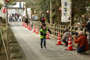 相浦児童センターでは25日に、すぐ近くにある飯盛神社の「駆け上がり大会」に
