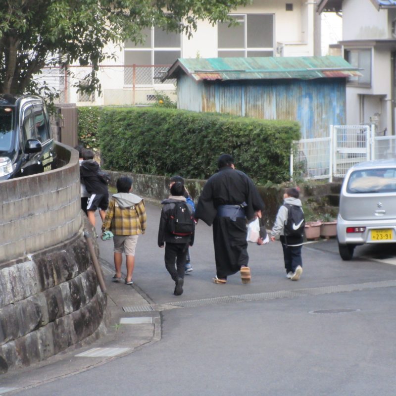 なかなかお目にかかれない力士の姿に、小学生や幼児さんは目をキラキラさせています。