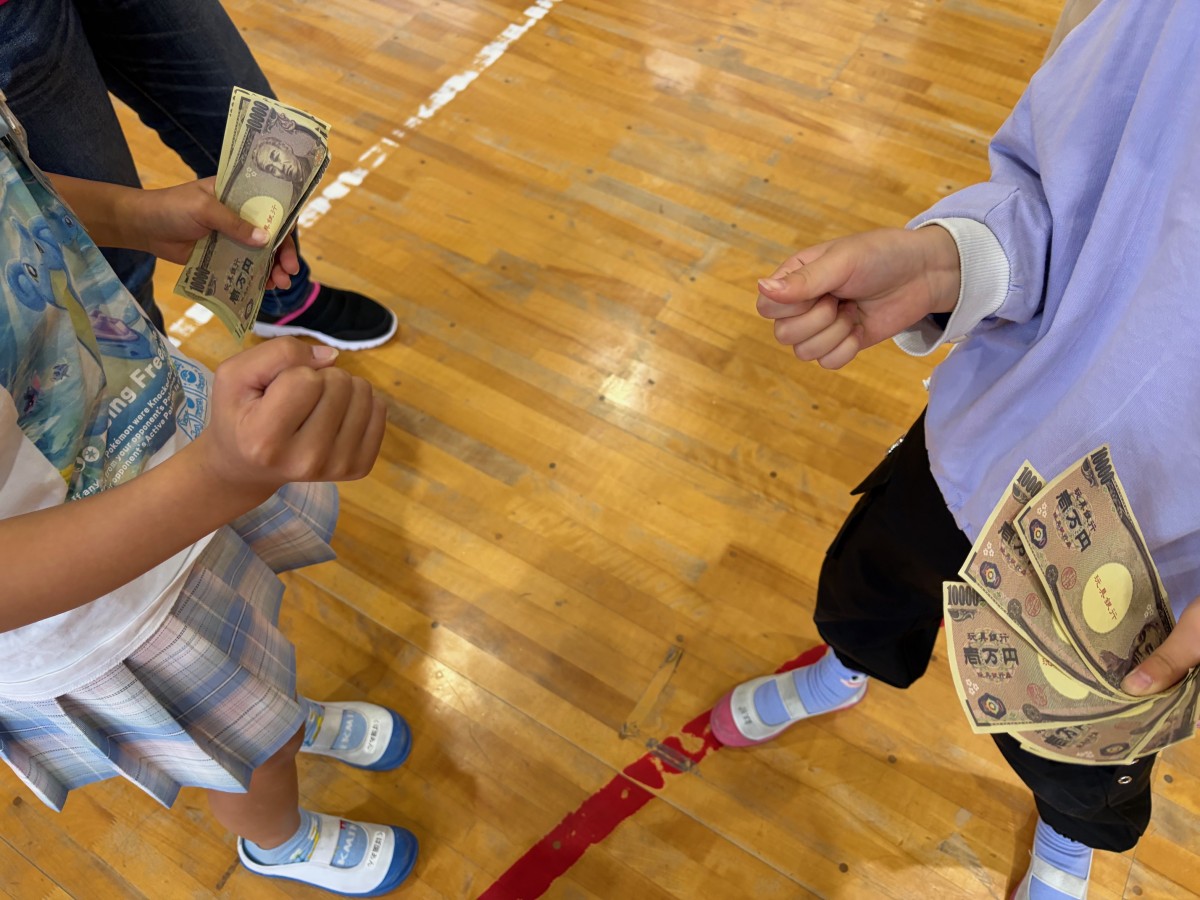 最後に行った「億万長者」では、13枚ものお札をゲットした児童も現れて、盛り上がりました。