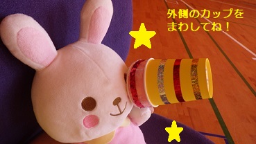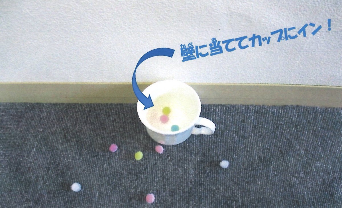 外して「シューティングゲーム」をしたり、壁の前にカップを置いて「玉入れ」