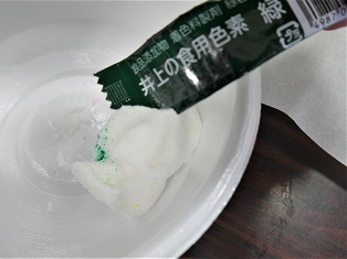 ③食紅を少しつけ、よくこねる
