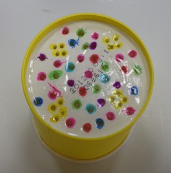 ⑥まわりに、デコレーションボールやスパンコールをボンドで貼ったら完成!!