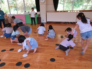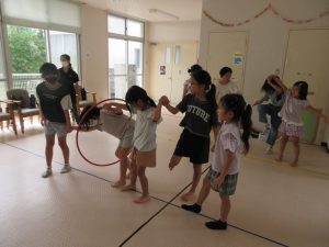 3つのレクリエーションをして遊びました。少しルールが難しいゲームもありましたが、こどもたちはあっという間にコツを掴み、何回か繰り返していくうちに負けると悔し泣きをしたり、真剣になって遊んでいる姿が印象的でした。