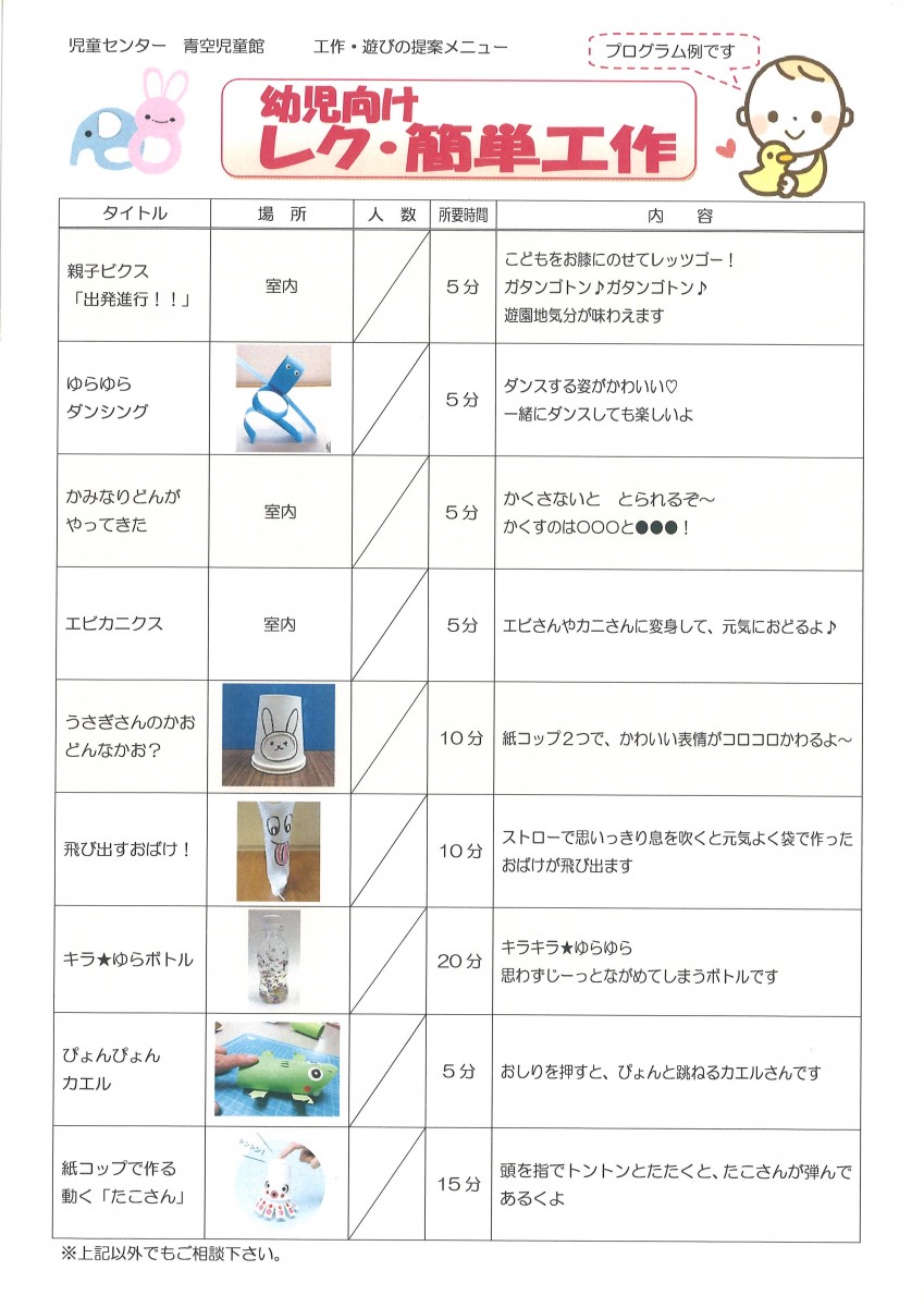 (例:レクリエーション、簡単工作、ペンシルバルーン等)