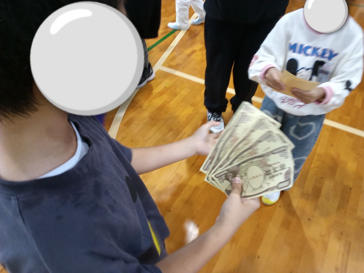最後に行った「億万長者」では、13枚ものお札をゲットした児童も現れて、盛り上がりました。