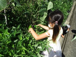 みんなで種まきをして畑に植えた苗から、毎日数本ずつきゅうりを収穫できるようになりました。