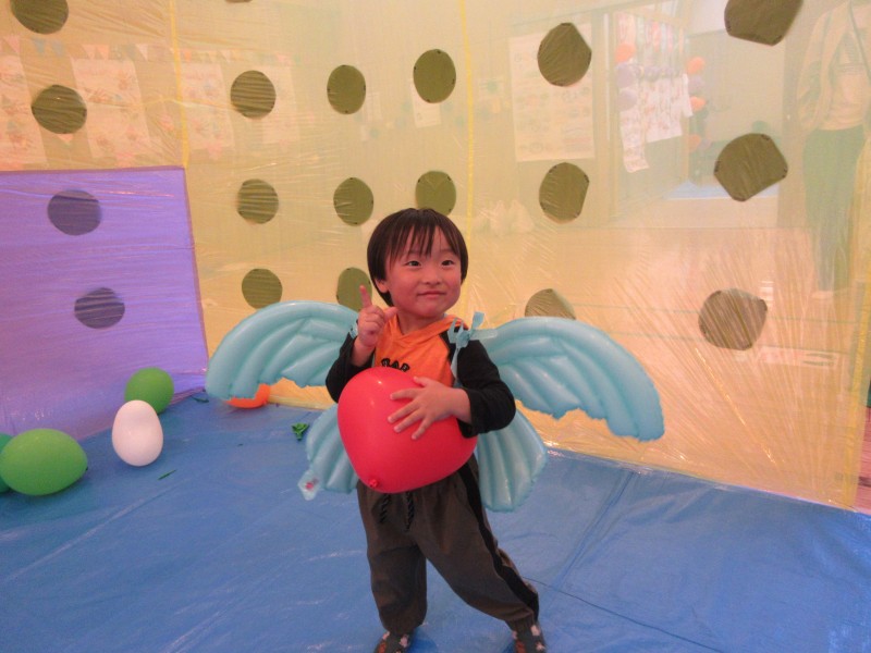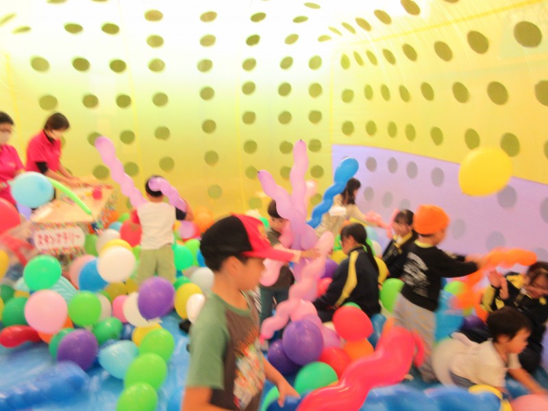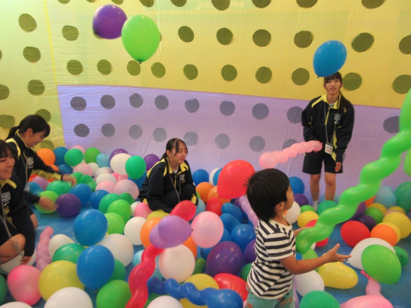 5メートル×3メートルの特大風船ドームの中は風船でいっぱいです❤中にいる佐世保東翔高校JRC部のお姉さんたちが一緒に遊んでくれるとあって、お友達もとっても楽しそうです❤