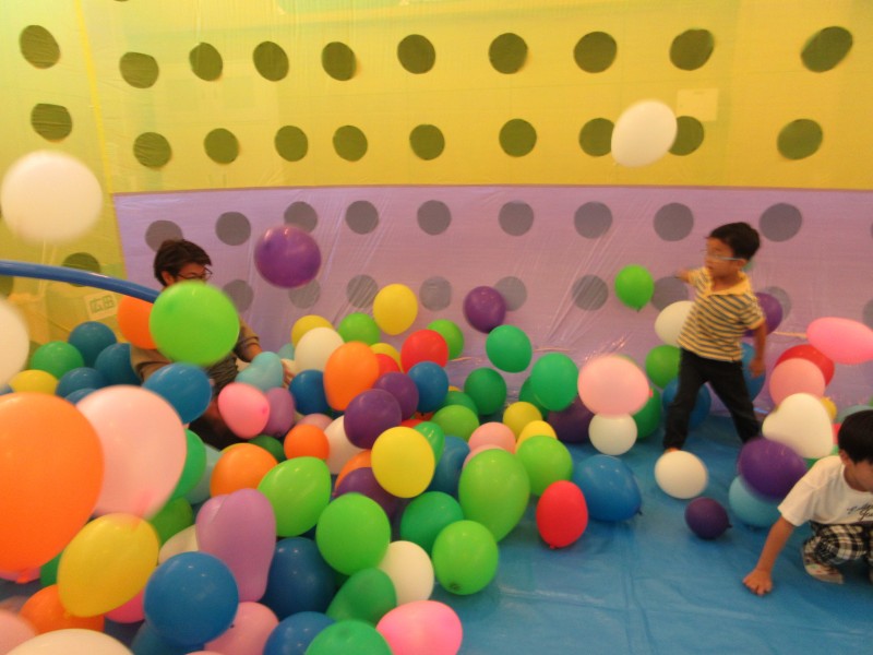 風船でいっぱいの風船ドームは、みんなの笑顔でいっぱいになりました 😀