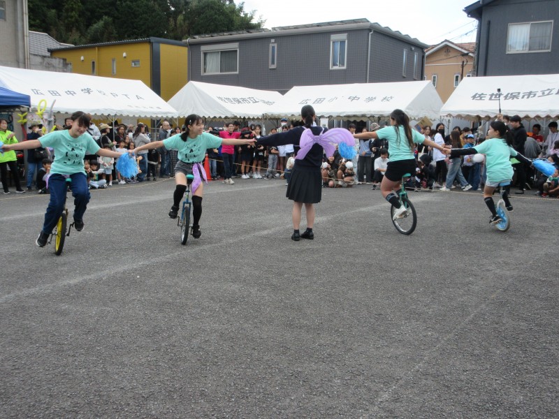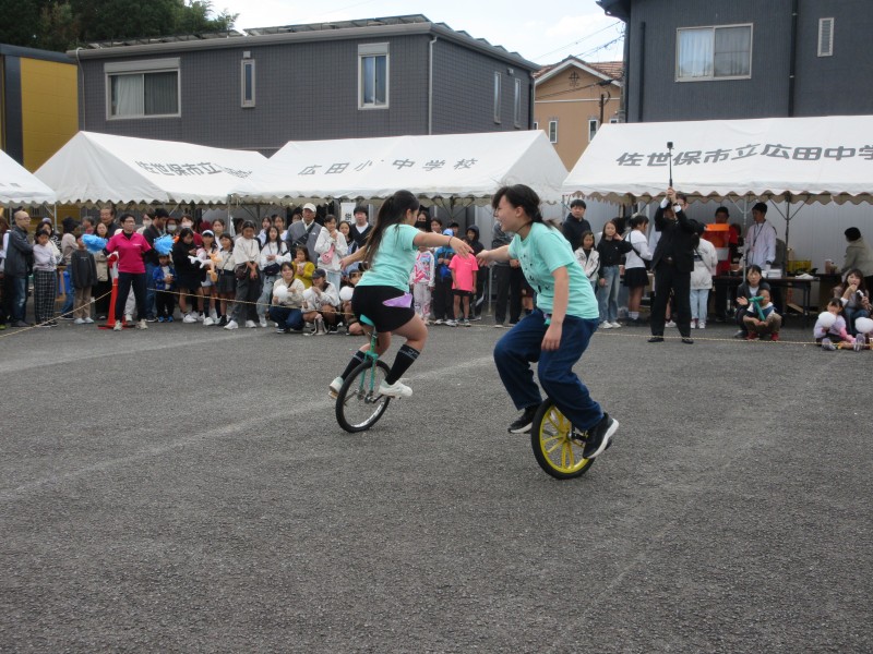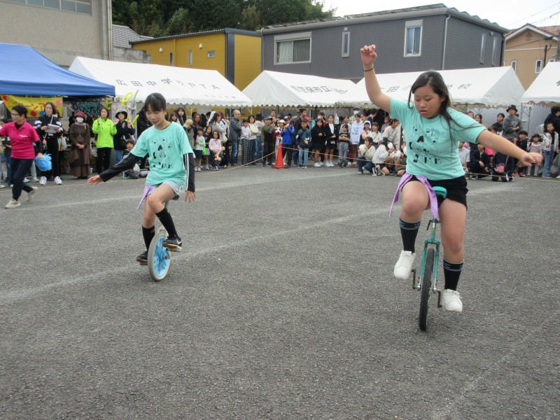 11月3日(祝・月)広田地区自治協議会主催の「第28回広田ふるさと祭り」が開催され、広田児童センターも一輪車演技とゲームコーナーで参加しました。