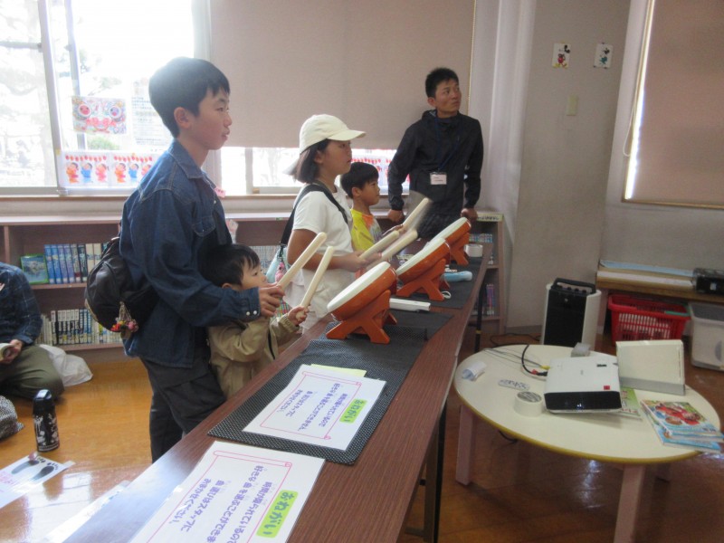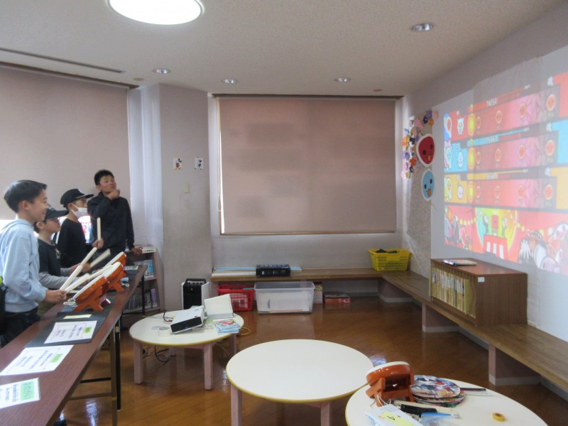 児童センターの図書室では、大人気の「太鼓の達人」幼児さんから中学生まで、楽しく太鼓を叩いていました。リピーターのお友達もたくさんいました🎵