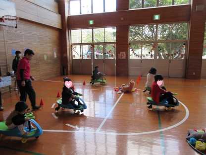 体育室では、足ではこがずハンドルを上手に動かすと進む、プラズマカーでドライブ🚙