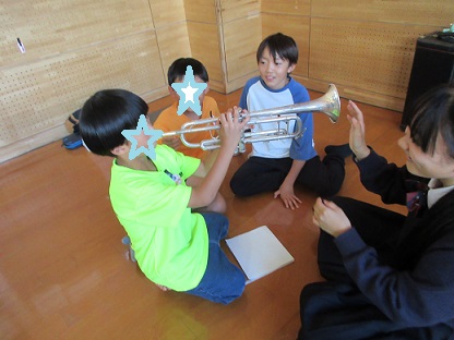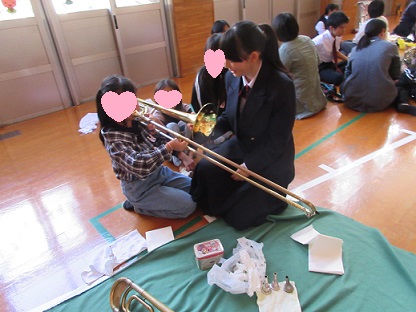 東翔高校吹奏楽部さん達による楽器体験をしました。