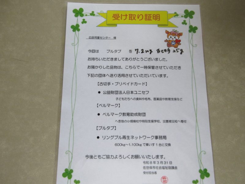後日、佐世保市社会福祉協議会に搬入し、受け取り証明書をいただきました!!