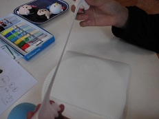 1日目は粘土に色付けをし、スポンジにくるんで土台をつくったり、