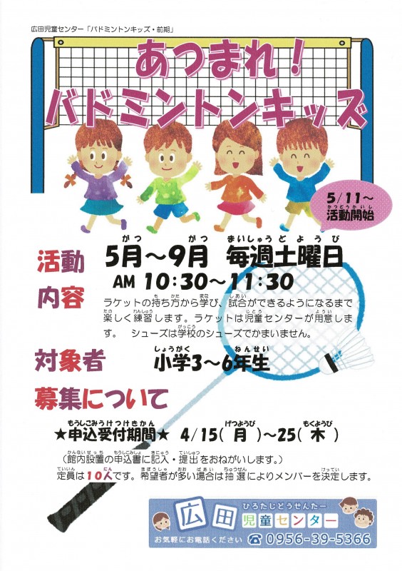 5月よりスタートする、バドミントンキッズのポスターもお見逃しなく☆