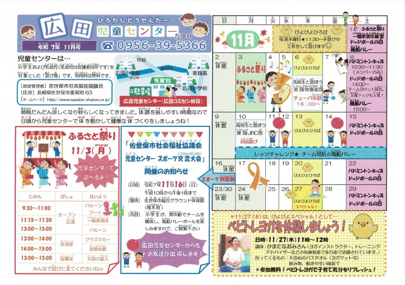 センターだよりはこちらをチェック→→→広田児童センターだより 11月号