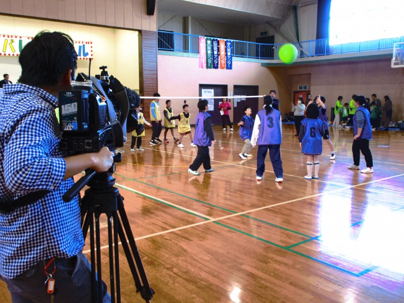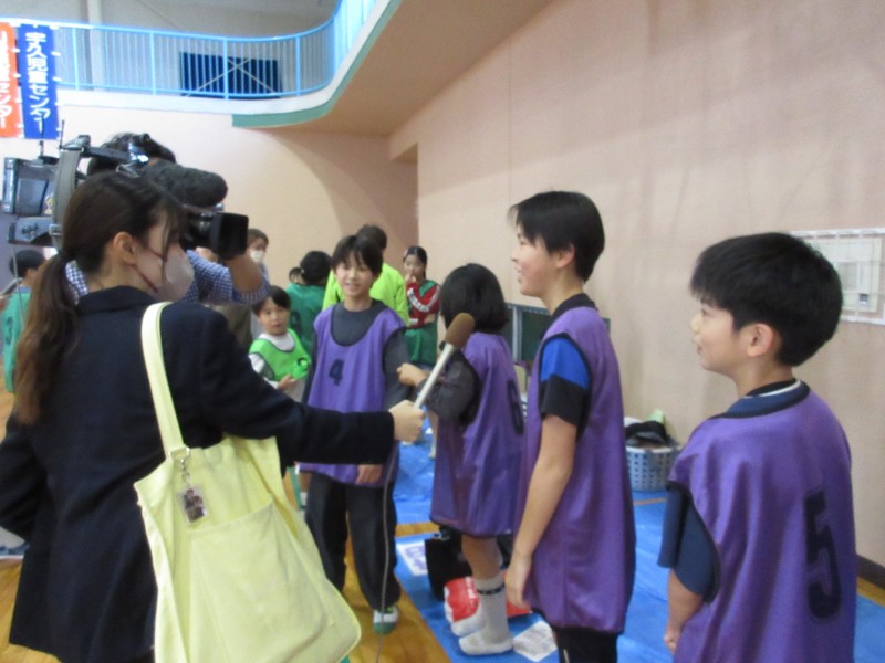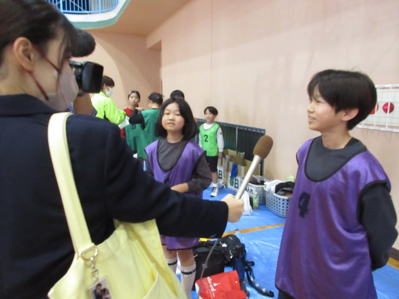 試合の合間にはテレビ佐世保の取材が入りインタビューを受ける場面も・・・。