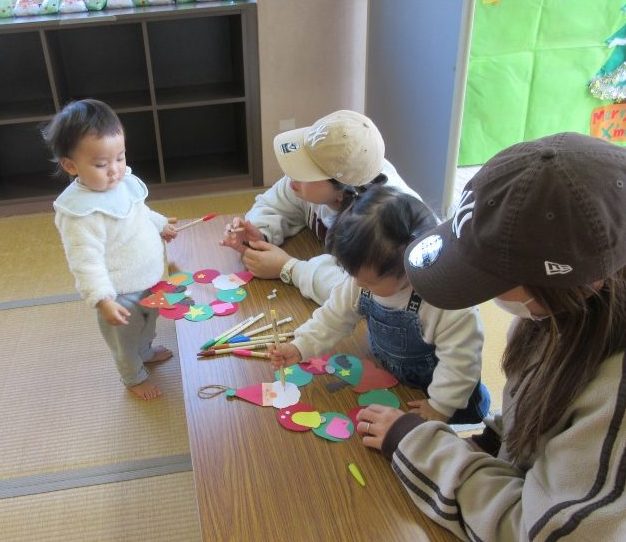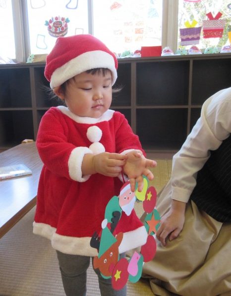 最初にクリスマスリースを作りました。できたよー♪って見せに来てくれる幼児さんがとってもかわいい❤