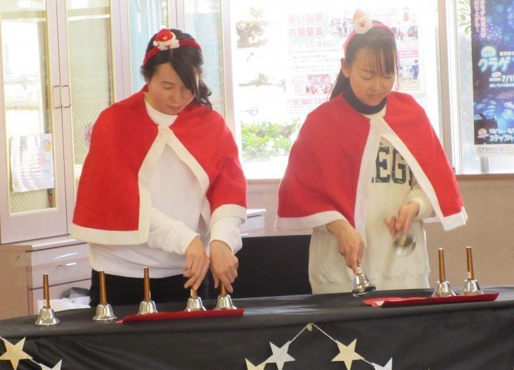 次は、ハンドベル演奏です。「赤鼻のトナカイ♪」は聞いたことある曲だから、幼児さんもぴょんぴょんジャンプしちゃいました❤