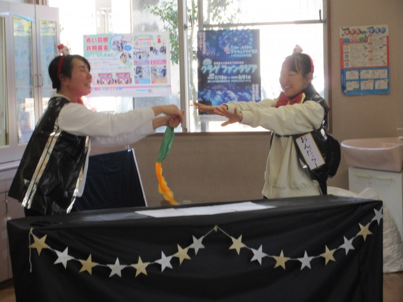 メインはマジックショー!「マジシャン☆菫が丘支援ダー」が登場して、リボンの色が変わったりプレゼントが出てきたりします!全部ハンドパワーです👐