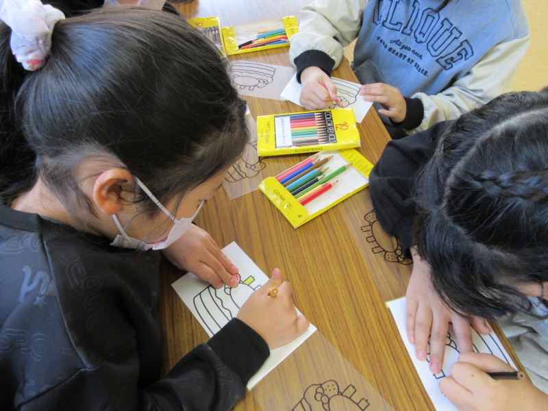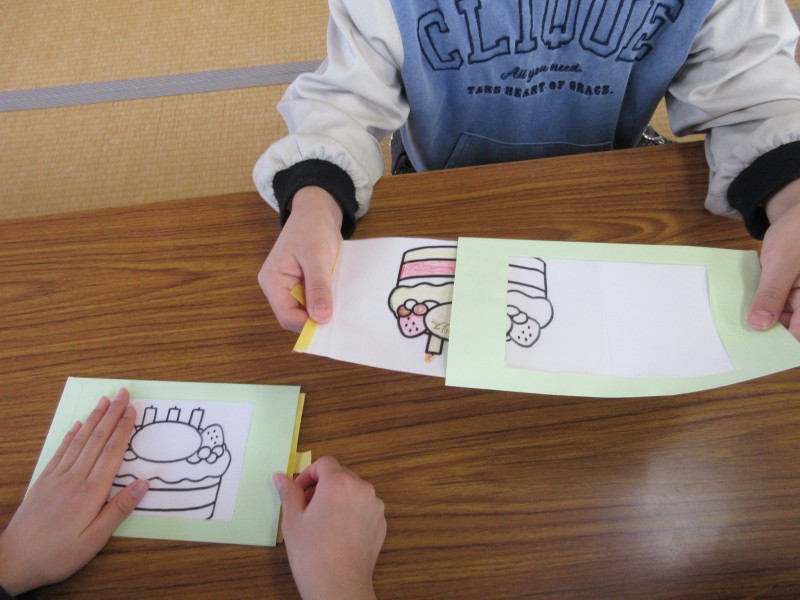最初に、種も仕掛けもありませんよ~と言いながら児童厚生員がマジックを披露しました。 白いクリスマスケーキに魔法をかけるとあら不思議!ケーキがカラフルになったよ 😉 帰ったら家族をびっくりさせるぞとみんなはりきって作りました☆