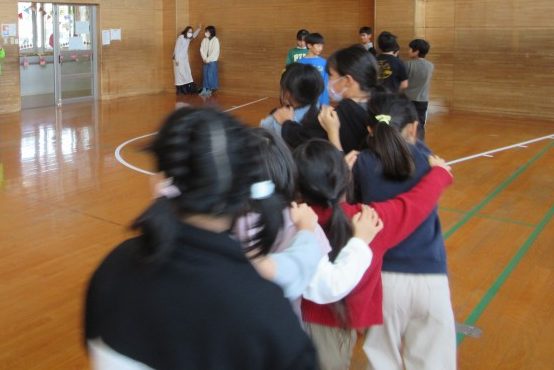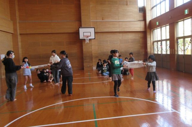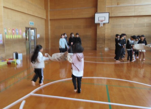 じゃんけん列車は2年Aさんが優勝!しっぽ取りゲームと新聞運び競争はパープルチームがダイヤチームに勝利したけど、もう勝敗はどうだっていいくらいみんな仲良く遊びました☆