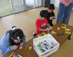 みんな、真剣に取り組んで、コマが完成すると、すぐにコマを回していました。