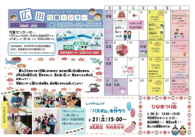 2月のセンターだよりはコチラ→広田児童センターだより 2月号