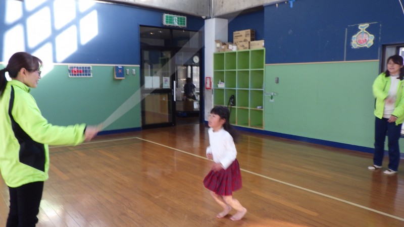 8の字やゆうびんやさんなど、いろんな跳び方で遊びました。