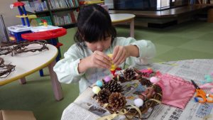 まつぼっくりやどんぐり、木の実などの材料を提供してくださった