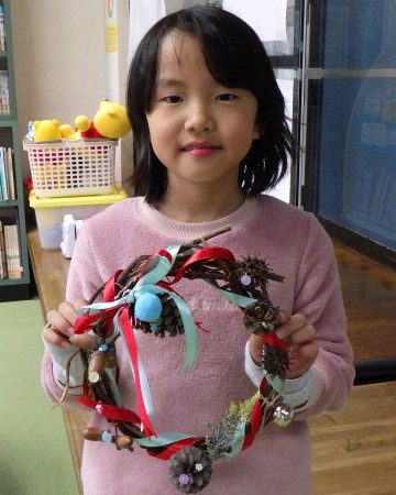 オリジナリティあふれるクリスマスリースが完成しました(*^^)v