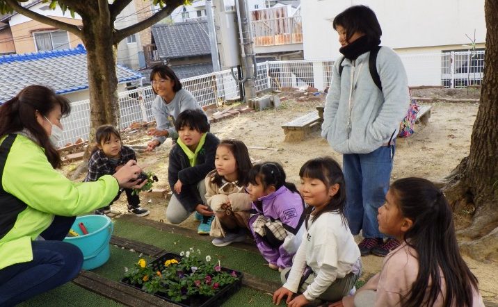 地域の方から、ビオラの苗をたくさんいただきました。