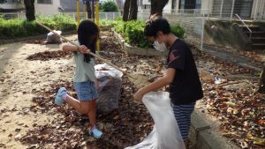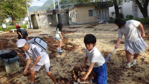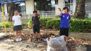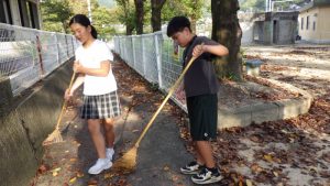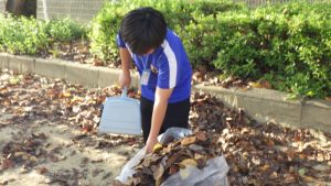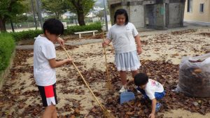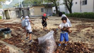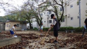 「今日は落ち葉掃きをしま~す♪」の呼びかけに