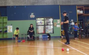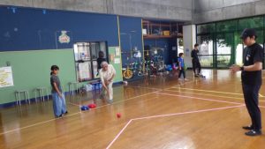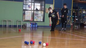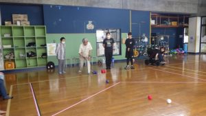 日本ボッチャ協会公認B級コーチの藤村徳久さんが指導や審判のために来てくださり、