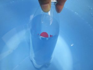 バケツに水を張り、ペットボトルを少しずつ入れていきましょう♫