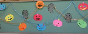 今月の「つくってみよう」はハロウィン飾りを作りましたよ。