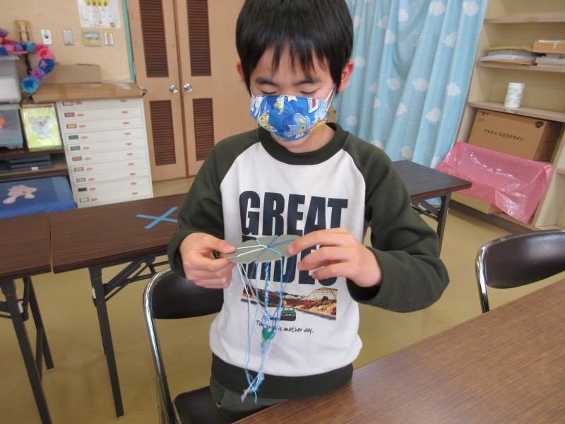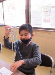 あいてる印から1,2,3番目の糸をその印のところへ動かして…の繰り返し。作り方が分かればみんな、1,2、3~♪と数えながらスイスイ編んでいきました 😀