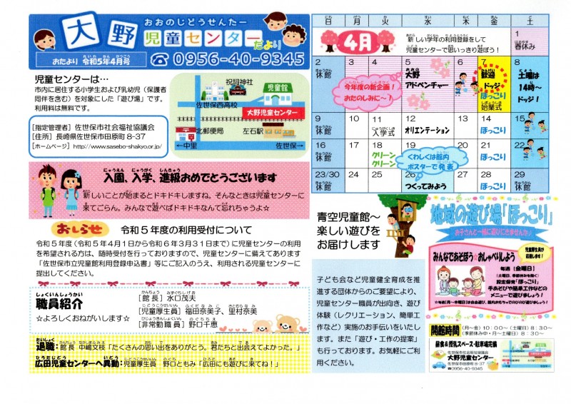 新しいことが始まるとドキドキしますね。そんなときは児童センターに来てごらん。みんなで遊べばドキドキなんて忘れちゃうよ☆