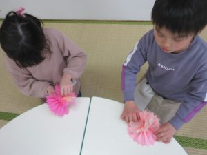 お花紙🌸経験者の児童が、率先して手ほどきしてくれています。