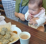 まだ食べれない5か月の赤ちゃんも興味津々♡
