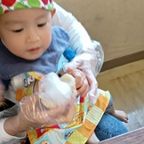 一緒に作ることができるお友達は、ママと一緒にマゼマゼ、マルマルして、