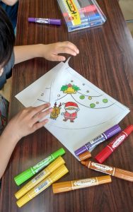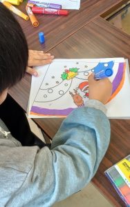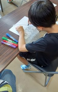 トレーシングペーパーの下絵に、色を塗っていきます。