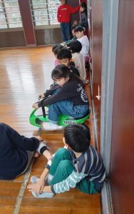 ・ルールの説明を聞き ・4色(4台)に分かれます ・スタンバイ