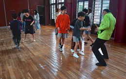 おもちゃのお札を持ち、じゃんけんで勝って沢山集めていきます!