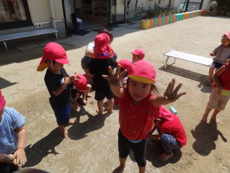 《どろんこ遊び楽しいね》