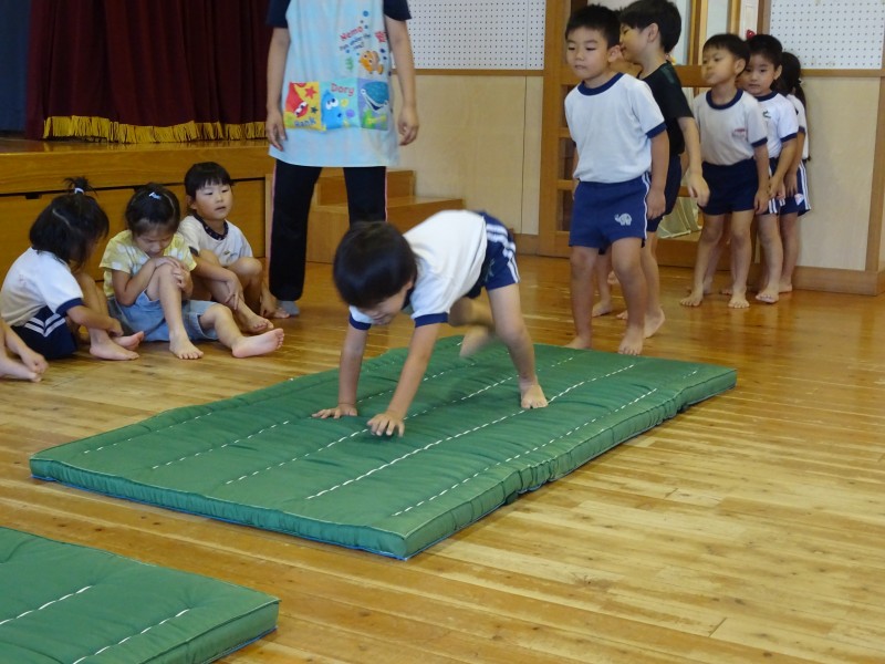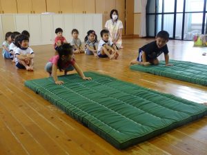 ももぐみの子どもたちは、マット運動や転がしドッチボールなど