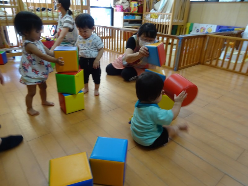 上手に積み上げたり、崩したりどちらも真剣!