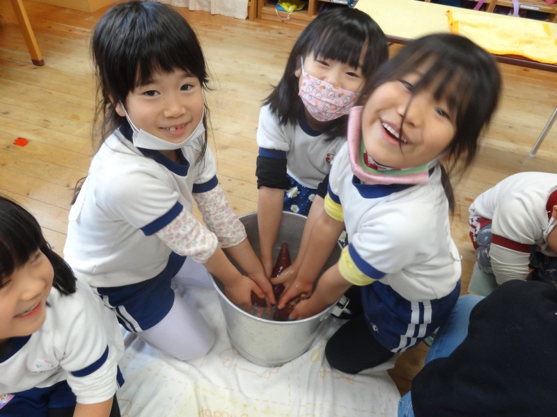 「いい匂い~」 「べたべたする~」など子ども達からはたくさんの感想が上がりました。