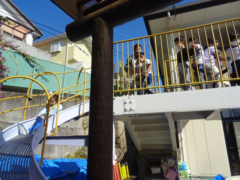2階の桜組は避難用滑り台を使ってみました。