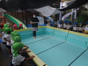 みんなで「ありがとうございました」「来年、またみんなでプール遊びができますように…」と